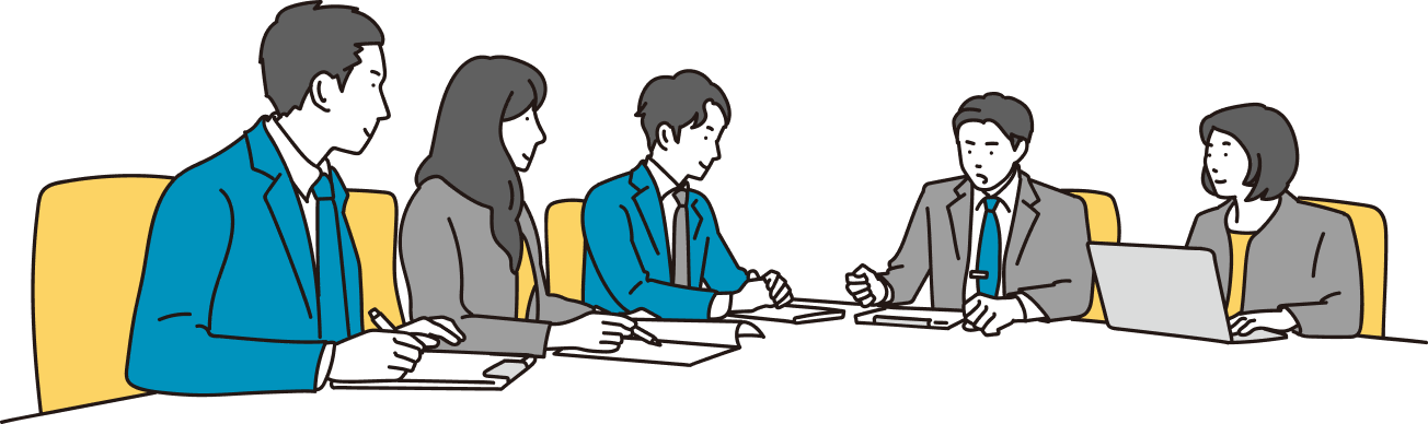 1人の弁護士だけで解決策を考えるのではなく、先輩の弁護士やベテランの弁護士、お客さまの業種に明るい弁護士など、様々な弁護士の経験・ノウハウをもとに、解決方法を検討します。